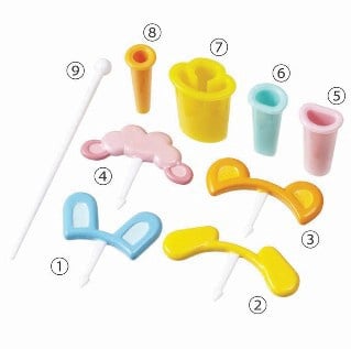 Met de mini uitstekertjes kun je tevens kleine gezichtjes uitsteken uit bijvoorbeeld kaas of nori, om de hoofdjes te versieren.